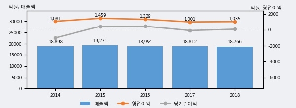 최근 3년간의 실적을 살펴보면, 매출액은 3년 연속 하락하고 있으나 그 하락폭은 줄어들고 있음을 알 수 있다.