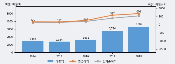최근 3년간의 실적을 살펴보면 안정적 성장세를 보이고 있다. 최근 3년간 매출로 볼 때 매년 증가하고 있다. 다만 최근에 그 증가폭이 다소 감소하고 있다.