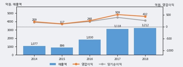 최근 3년간의 실적을 살펴보면 안정적 성장세를 보이고 있다. 최근 3년간 매출로 볼 때 매년 증가하고 있다. 다만 최근에 그 증가폭이 다소 감소하고 있다.