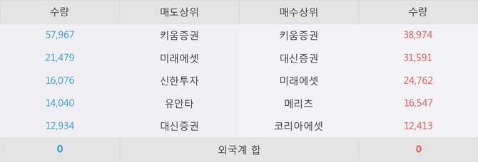 아직까지 외국계 증권사 창구를 통한 매매는 발생하지 않고 있다. 그리고 이 시간 대신증권이 매수창구상위에 올라있는 종목은 이 종목 이외에도 한화손해보험, KODEX 코스닥150선물인버스 등이 있다.