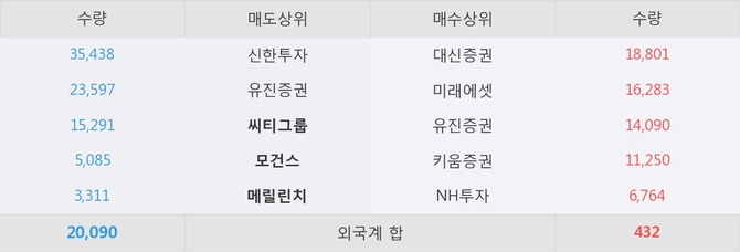 매도 창구 상위에 씨티그룹, 모건스 등 외국계 증권사가 포진해 있어 외국인 매도세가 유입되고 있는 것으로 풀이된다.