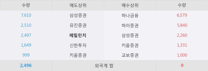 거래원 동향은 하나금융, 삼성증권 등이 매수 상위 목록에 나타나고 있다. 한편, 매도 창구 상위에는 메릴린치가 눈에 띄고 있다.