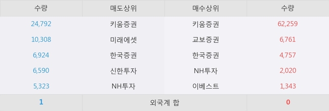이 시각 주요 거래원은 NH투자, 키움증권, 교보증권 등이 매수 상위 창구에 자리하고 있다.