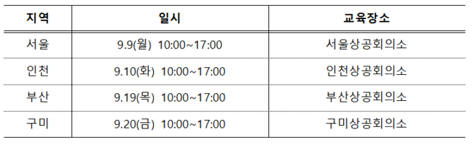 특강은 1일 6시간 과정으로 각 국가별 통관전문가 3명이 2시간씩 진행하며, 현장에서 기업별 1:1 상담도 함께 실시한다.