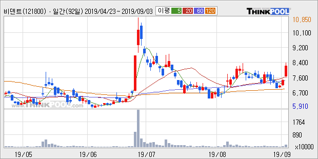 비덴트의 2018년 매출액은 전년대비 -10.3% 줄어든 215억원이고, 영업이익은 흑자전환해서 12억원을 기록했다. 이 회사의 매출액 증감률과 영업이익 증감률은 각각 코스닥 하위 23%, 상위 13%에 해당된다.