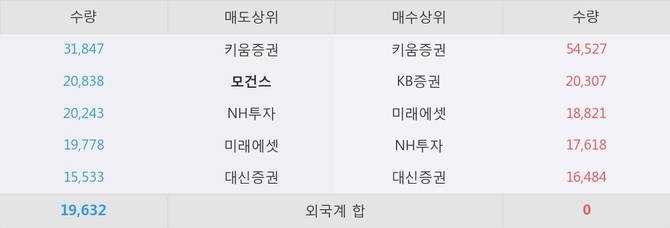 거래원 동향은 모건스, NH투자, 미래에셋 등이 매도 상위 목록에 나타나고 있다.
