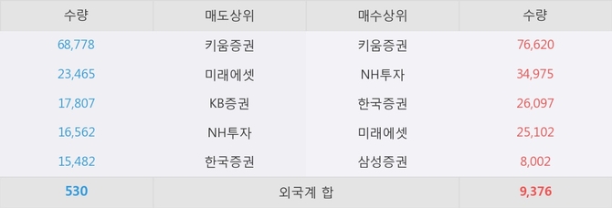 거래원 동향은 NH투자, 미래에셋, 삼성증권 등이 매수 상위 목록에 나타나고 있다.