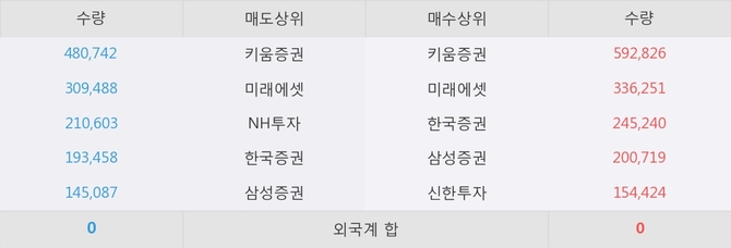 아직까지 외국계 증권사 창구를 통한 매매는 발생하지 않고 있다. 그리고 이 시간 미래에셋이 매수창구상위에 올라있는 종목은 이 종목 이외에도 KH바텍, 국일제지 등이 있다.
