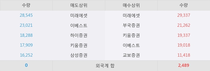 거래원 동향은 미래에셋, 삼성증권 등이 매도 상위 목록에 나타나고 있다.