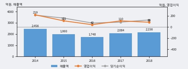 화천기공의 2018년 매출액은 2156억으로 전년대비 3.4% 상승했고, 영업이익은 86억으로 전년대비 -22.3% 하락했다. 이 회사의 매출액 증감률과 영업이익 증감률은 각각 코스피 하위 50%, 하위 38%에 해당된다.
