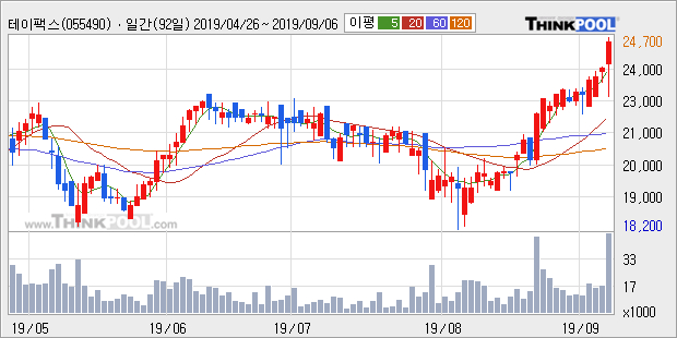 테이팩스의 2018년 매출액은 1085억으로 전년대비 2.5% 상승했고, 영업이익은 75억으로 전년대비 -37.0% 하락했다. 이 회사의 매출액 증감률과 영업이익 증감률은 각각 코스피 하위 46%, 하위 28%에 해당된다.