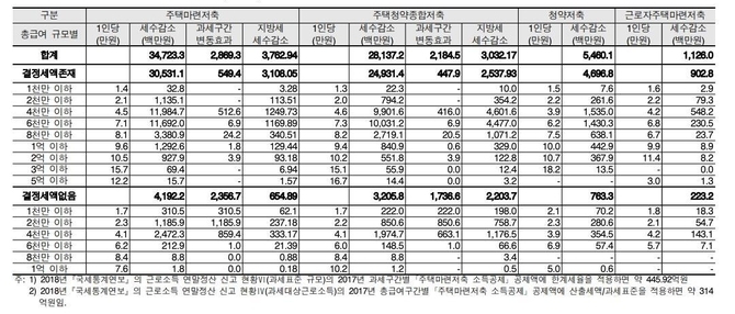 보고서의 세부담과 세수감소 추정 결과에 따르면 주택청약종합저축으로 국세 세수가 총 281억3720만원(2017년 기준) 감소했다.