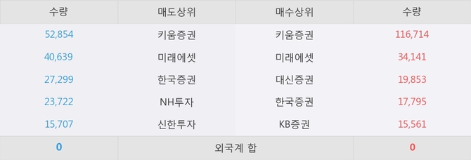 이 시각 주요 거래원은 미래에셋, 키움증권, 대신증권 등이 매수 상위 창구에 자리하고 있다.