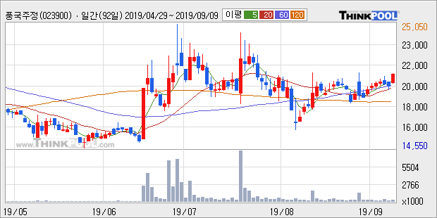 풍국주정의 2018년 매출액은 전년대비 12.0% 늘어난 1204억원이고, 영업이익 또한 전년대비 18.6% 늘어난 134억원을 기록했다. 이 회사의 매출액 증감률과 영업이익 증감률은 각각 코스닥 상위 35%, 상위 35%에 해당된다.