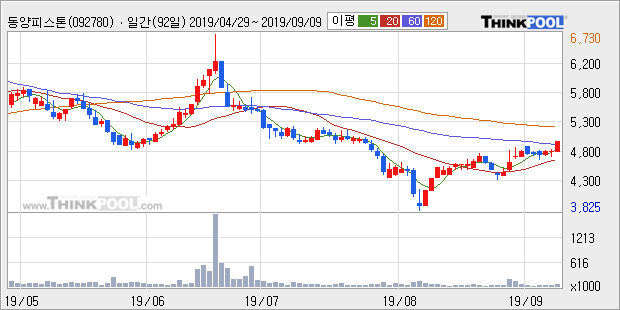 동양피스톤의 2018년 매출액은 전년대비 12.9% 늘어난 3322억원이고, 영업이익은 전년대비 -8.5% 줄어든 174억원을 기록했다. 이 회사의 매출액 증감률과 영업이익 증감률은 각각 코스피 상위 21%, 하위 48%에 해당된다.