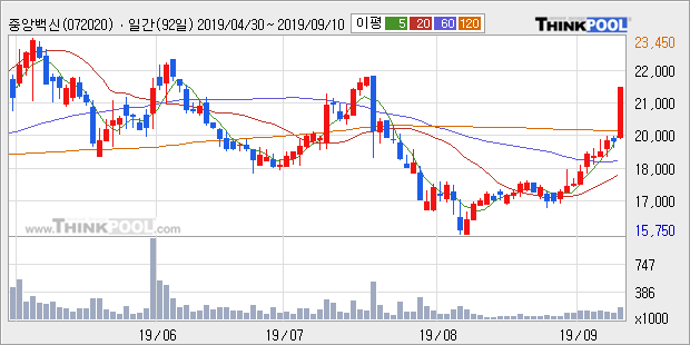 중앙백신의 2018년 매출액은 332억으로 전년대비 4.0% 상승했고, 영업이익은 35억으로 전년대비 -36.9% 하락했다. 이 회사의 매출액 증감률과 영업이익 증감률은 각각 코스닥 하위 50%, 하위 35%에 해당된다.