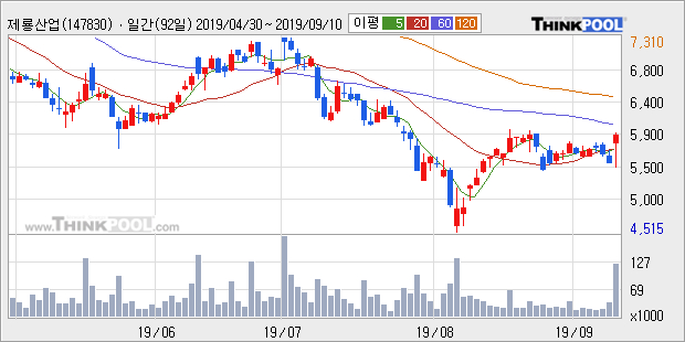 제룡산업의 2018년 매출액은 전년대비 -6.6% 줄어든 320억원이고, 영업이익은 전년대비 1.0% 늘어난 31억원을 기록했다. 이 회사의 매출액 증감률과 영업이익 증감률은 각각 코스닥 하위 28%, 상위 44%에 해당된다.