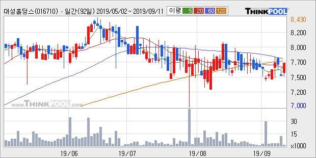 대성홀딩스는 2018년 매출액 9098억원과 영업이익 184억원을 기록했다. 전년대비 매출은 0.7% 상승했고, 영업이익은 -24.8% 하락했다. 이 회사의 매출액 증감률과 영업이익 증감률은 각각 코스피 하위 39%, 하위 36%에 해당된다.