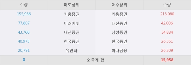 거래원 동향은 삼성증권, 하나금융 등이 매수 상위 목록에 나타나고 있다.