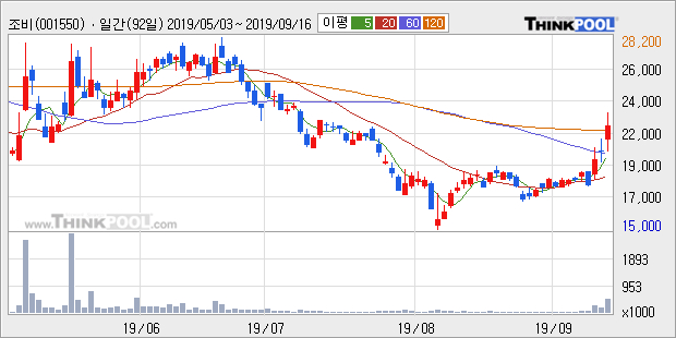 조비의 2018년 매출액은 전년대비 0.9% 늘어난 605억원이고, 영업이익 또한 전년대비 17.4% 늘어난 19억원을 기록했다. 이 회사의 매출액 증감률과 영업이익 증감률은 각각 코스피 하위 40%, 상위 32%에 해당된다.