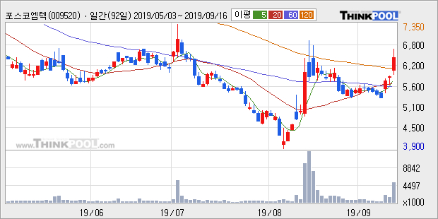 차트상 주가의 흐름은 현재 단기·중기 이평선이 정배열 상태로 전형적인 상승세를 보이고 있다. 최근 이 종목의 차트에서 이동평균밀집(5%이내), 골든크로스, 최근 60일 매물대 돌파 등의 특이사항이 발생했다.