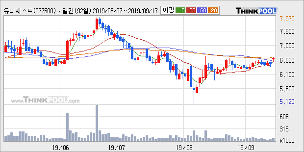유니퀘스트는 2018년 매출액 2703억원과 영업이익 20억원을 기록했다. 전년대비 매출은 9.8% 상승했고, 영업이익은 -76.7% 하락했다. 이 회사의 매출액 증감률과 영업이익 증감률은 각각 코스피 상위 27%, 하위 14%에 해당된다.