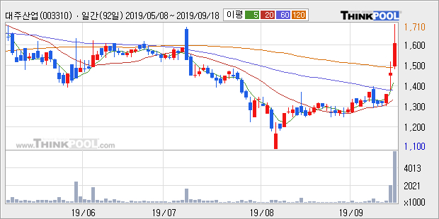 차트상 주가의 흐름은 단기간에 골든크로스를 만들고 주가가 60일선까지 뚫고 가는 모습이다.