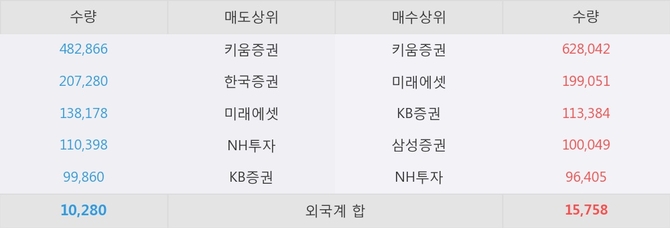 거래원 동향은 미래에셋, 삼성증권, NH투자 등이 매수 상위 목록에 나타나고 있다.