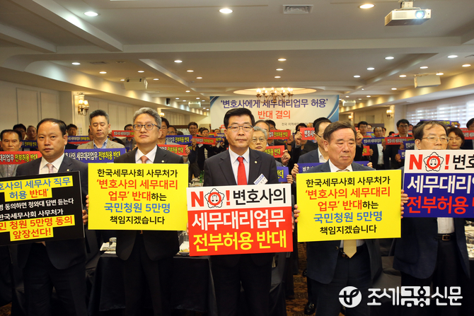 원 회장은 “지금 1만3천 회원 모두가 변호사에게 세무대리업무를 전부 허용하는 정부의 세무사법 개정안을 강력하게 반대한다”며 “우리 모두 일치단결하여 이것을 반드시 막아내야 하며 막아낼 것이다”고 강조했다.