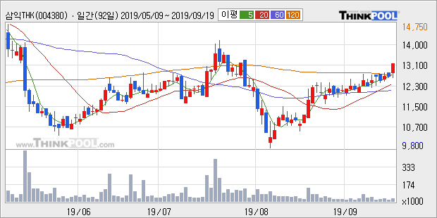 차트상 주가의 흐름은 현재 단기·중기 이평선이 정배열 상태로 전형적인 상승세를 보이고 있다. 최근 이 종목의 차트에서 최근 5일 매물대 돌파 등의 특이사항이 발생했다.
