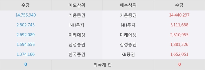 거래원 동향은 NH투자, 미래에셋, 삼성증권 등이 매수 상위 목록에 나타나고 있다.