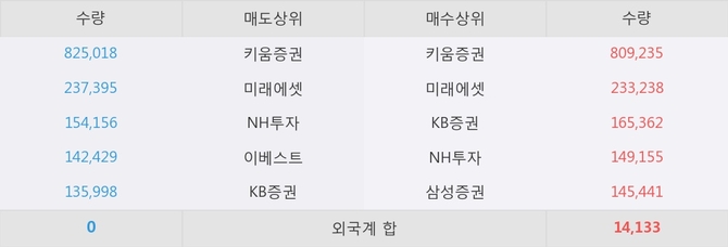 거래원 동향은 미래에셋, NH투자, 삼성증권 등이 매수 상위 목록에 나타나고 있다.