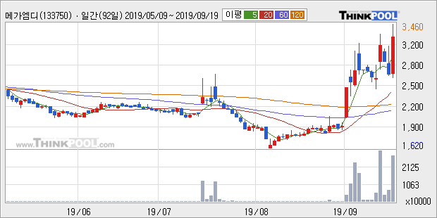 메가엠디는 2018년 매출액 753억원과 영업이익 19억원을 기록했다. 전년대비 매출은 8.9% 상승했고, 영업이익은 흑자전환했다. 이 회사의 매출액 증감률과 영업이익 증감률은 각각 코스닥 상위 41%, 상위 8%에 해당된다.