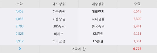거래원 동향은 메릴린치, CS증권, 하나금융 등이 매수 상위 목록에 위치하고 있다.