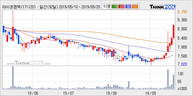 일봉 차트의 모습은 단기간에 골든크로스를 만들고 주가가 60일선까지 뚫고 가는 모습이다.