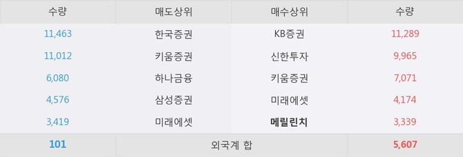 거래원 동향은 메릴린치, 미래에셋이 매수 상위 목록에 나타나고 있다.