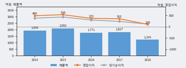 하이록코리아는 2018년 매출액 1243억원과 영업이익 108억원을 기록했다. 전년대비 매출은 -32.0%, 영업이익은 -69.5% 각각 하락했다. 이 회사의 매출액 증감률과 영업이익 증감률은 각각 코스닥 하위 6%, 하위 24%에 해당된다.