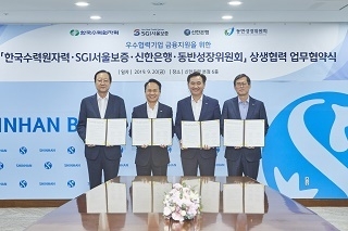 (조세금융신문=방영석 기자) SGI서울보증은 20일 신한은행 본점에서 한국수력원자력, 신한은행 및 동반성장위원회과 함께 '한국수력원자력 협력기업 금융지원 업무협약'을 체결했다고 밝혔다.