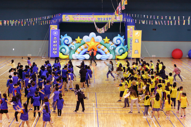 이날 350여명의 어린이들은 지도교사들과 함께 줄다리기, 비전탑쌓기, 한마음 달리기 등 협동심을 키우는 단체경기를 펼쳤고 컬링, 댄스 경연 등 다양한 종목에 참여했다.