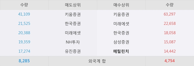 거래원 동향은 메릴린치, 미래에셋, 삼성증권 등이 매수 상위 목록에 나타나고 있다.