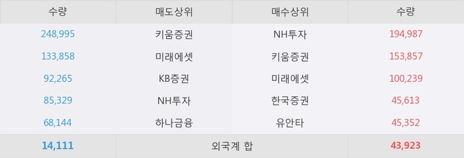 거래원 동향은 NH투자, 미래에셋 등이 매수 상위 목록에 나타나고 있다.
