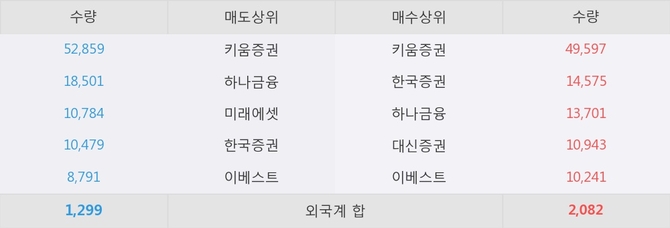 이 시각 주요 거래원은 하나금융, 키움증권, 한국증권 등이 매수 상위 창구에 자리하고 있다.