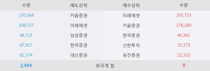 이 시각 주요 거래원은 미래에셋, 키움증권, 한국증권 등이 매수 상위 창구에 자리하고 있다.