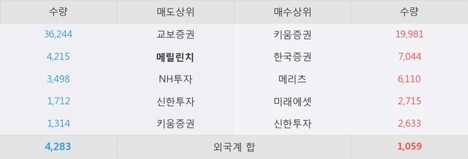 거래원 동향은 메릴린치, NH투자가 매도 상위 목록에 나타나고 있다.