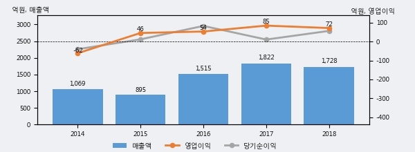 인베니아는 2018년 매출액 1728억원과 영업이익 72억원을 기록했다. 전년대비 매출은 -5.1%, 영업이익은 -15.2% 각각 하락했다. 이 회사의 매출액 증감률과 영업이익 증감률은 각각 코스닥 하위 30%, 하위 46%에 해당된다.