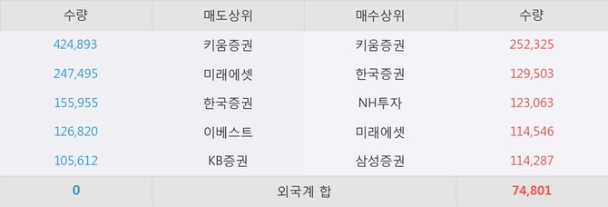 이 시각 주요 거래원은 미래에셋, 키움증권, 한국증권 등이 매도 상위 창구에 자리하고 있다.