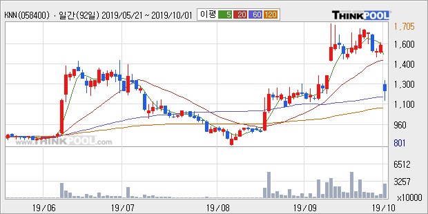 KNN의 2018년 매출액은 전년대비 -1.9% 줄어든 641억원이고, 영업이익 역시 전년대비 -9.2% 줄어든 78억원을 기록했다. 이 회사의 매출액 증감률과 영업이익 증감률은 각각 코스닥 하위 36%, 하위 49%에 해당된다.