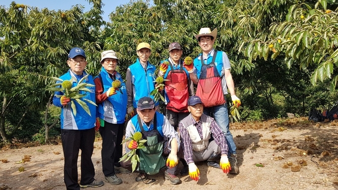 황선의 부단장은 “3년째 매번 봉사하면서 일손 부족 제때 수확하지 못해 농가가 발만 동동 구르고 있다”며 “밤 농가 일손돕기를 하면서 우리 밤을 많이 구매해 농가 활성화에 보탬이 됐으면 한다”고 전했다.