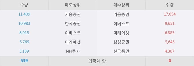 거래원 동향은 미래에셋, 삼성증권 등이 매수 상위 목록에 나타나고 있다.