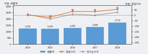 최근 3년간의 실적을 살펴보면 안정적 성장세를 보이고 있다. 최근 3년간 매출로 볼 때 매년 증가하고 있고 그 증가폭도 확대되고 있다.